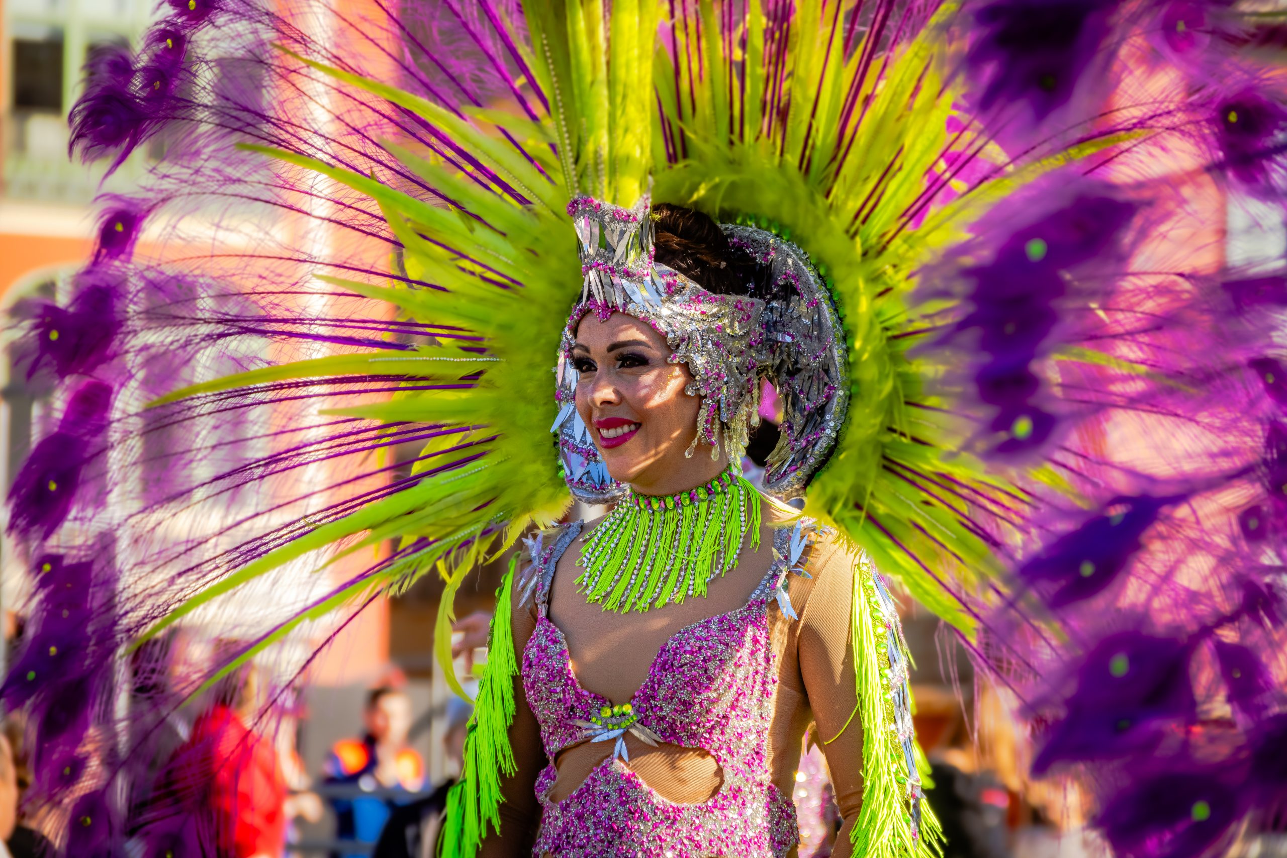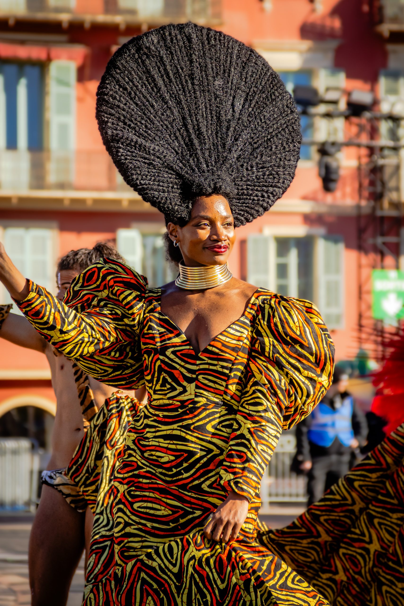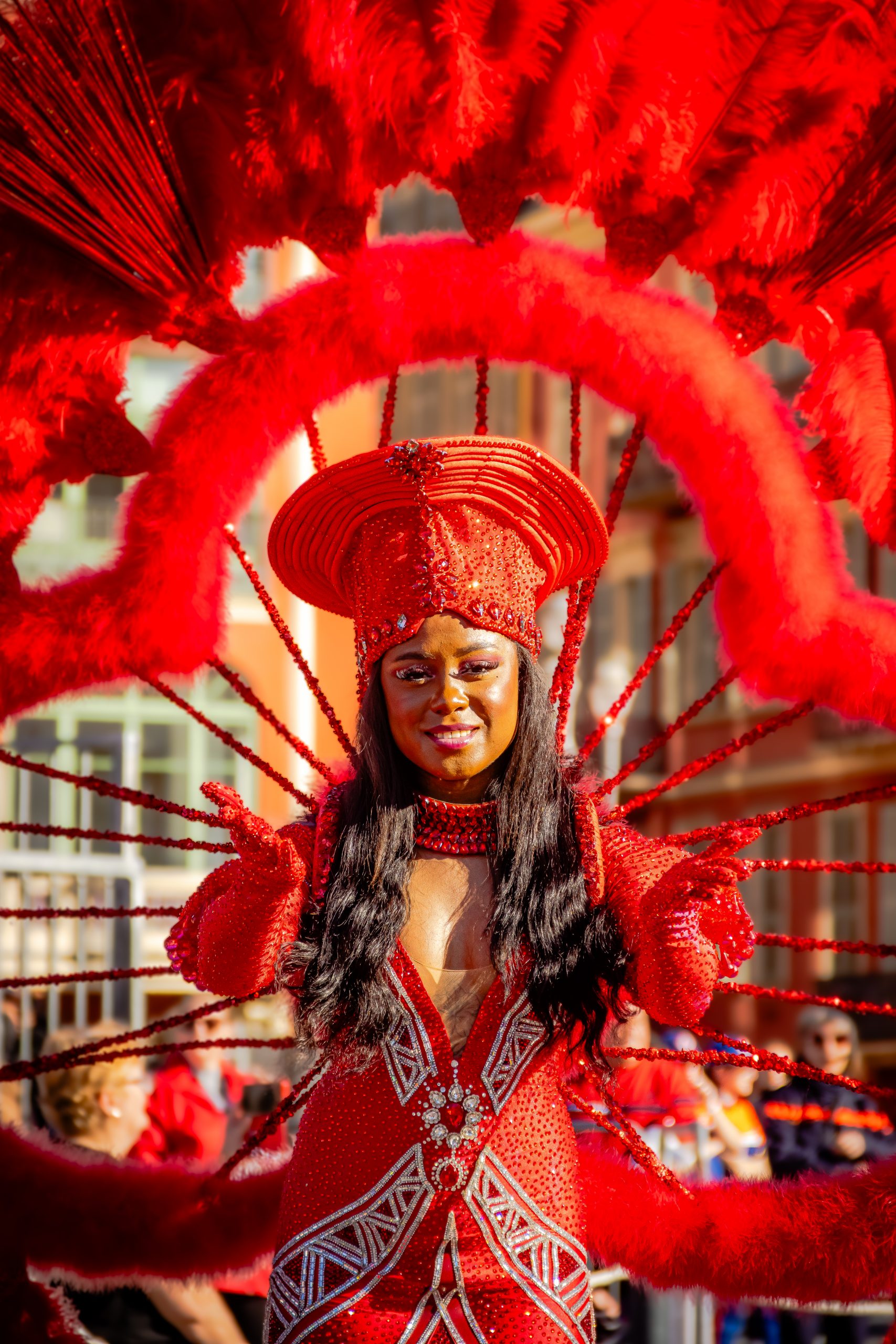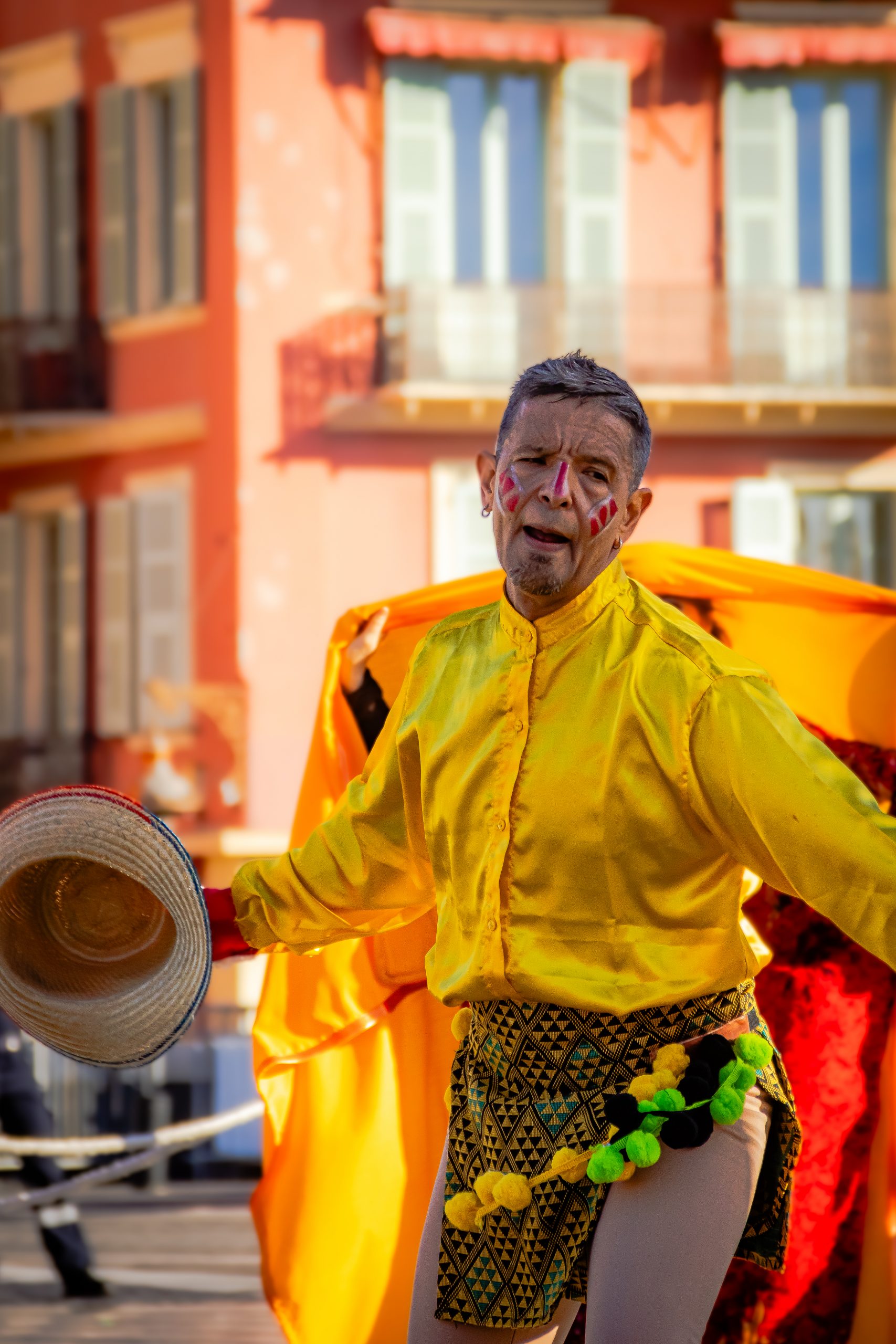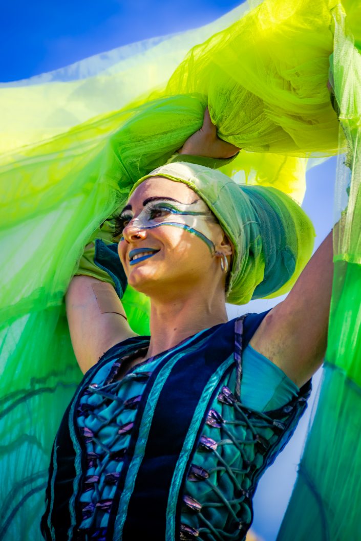 14 comédiennes distribuent au public plus de 4 tonnes de mimosas par sortie, en plus des fleurs décorant les chars.