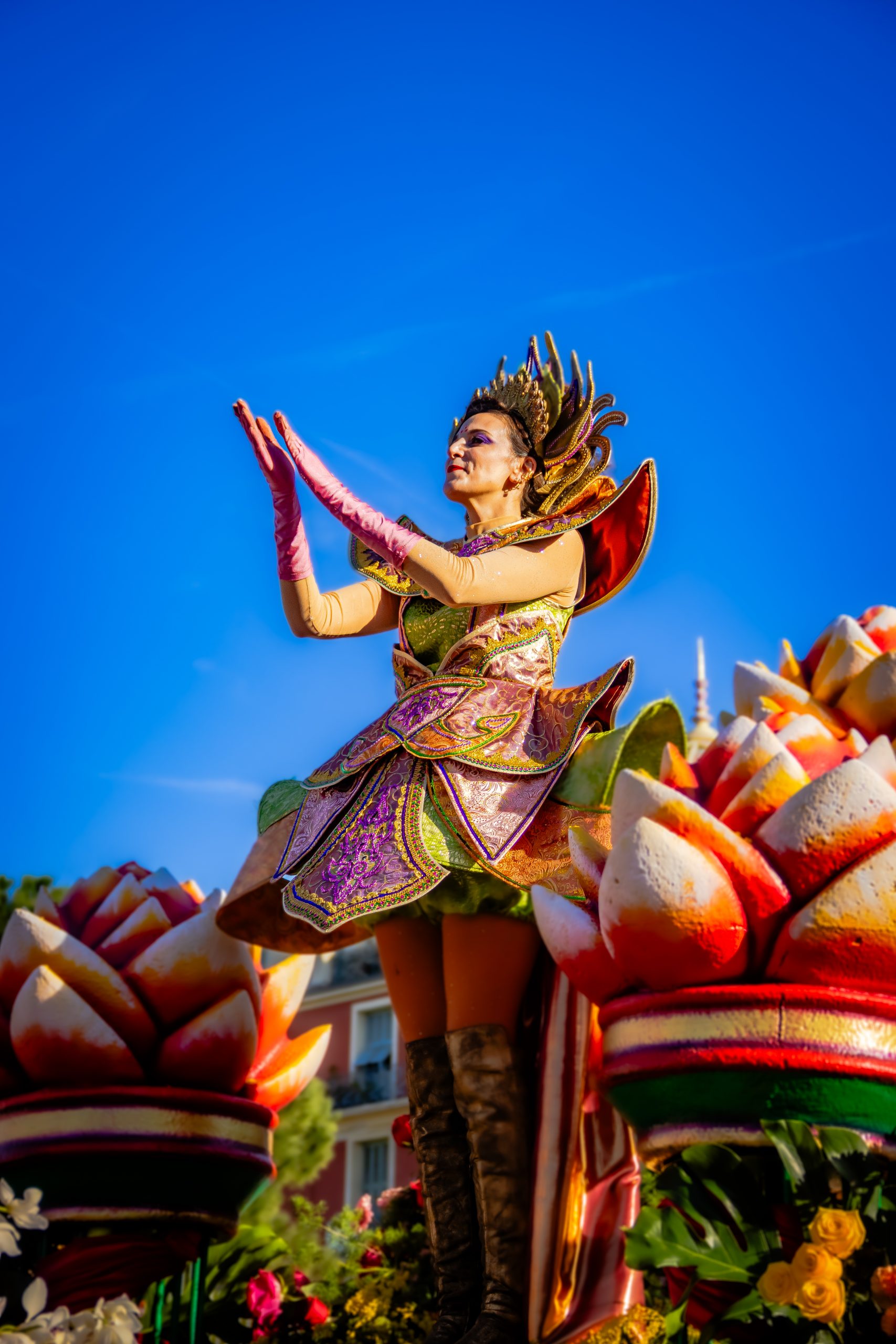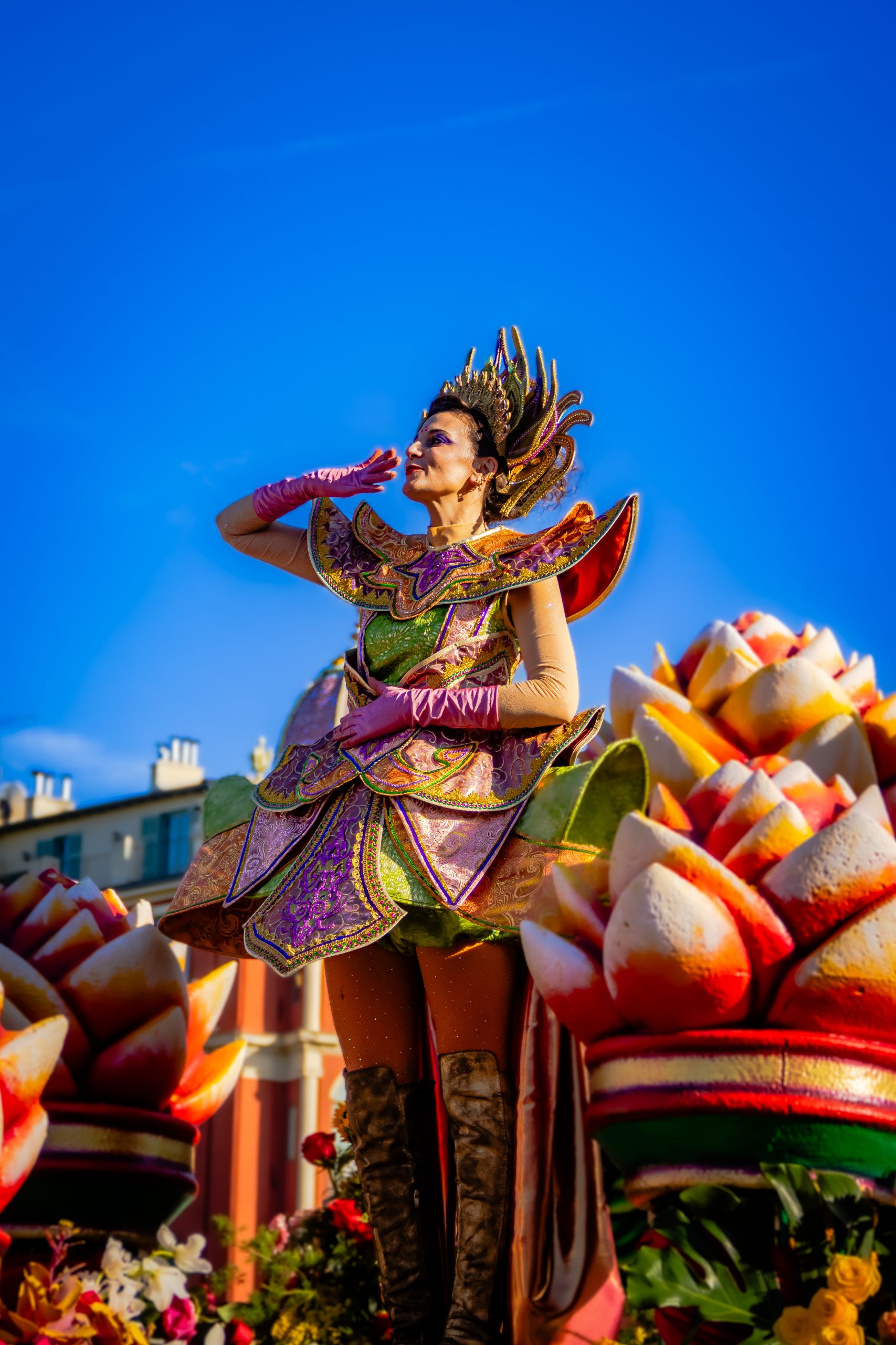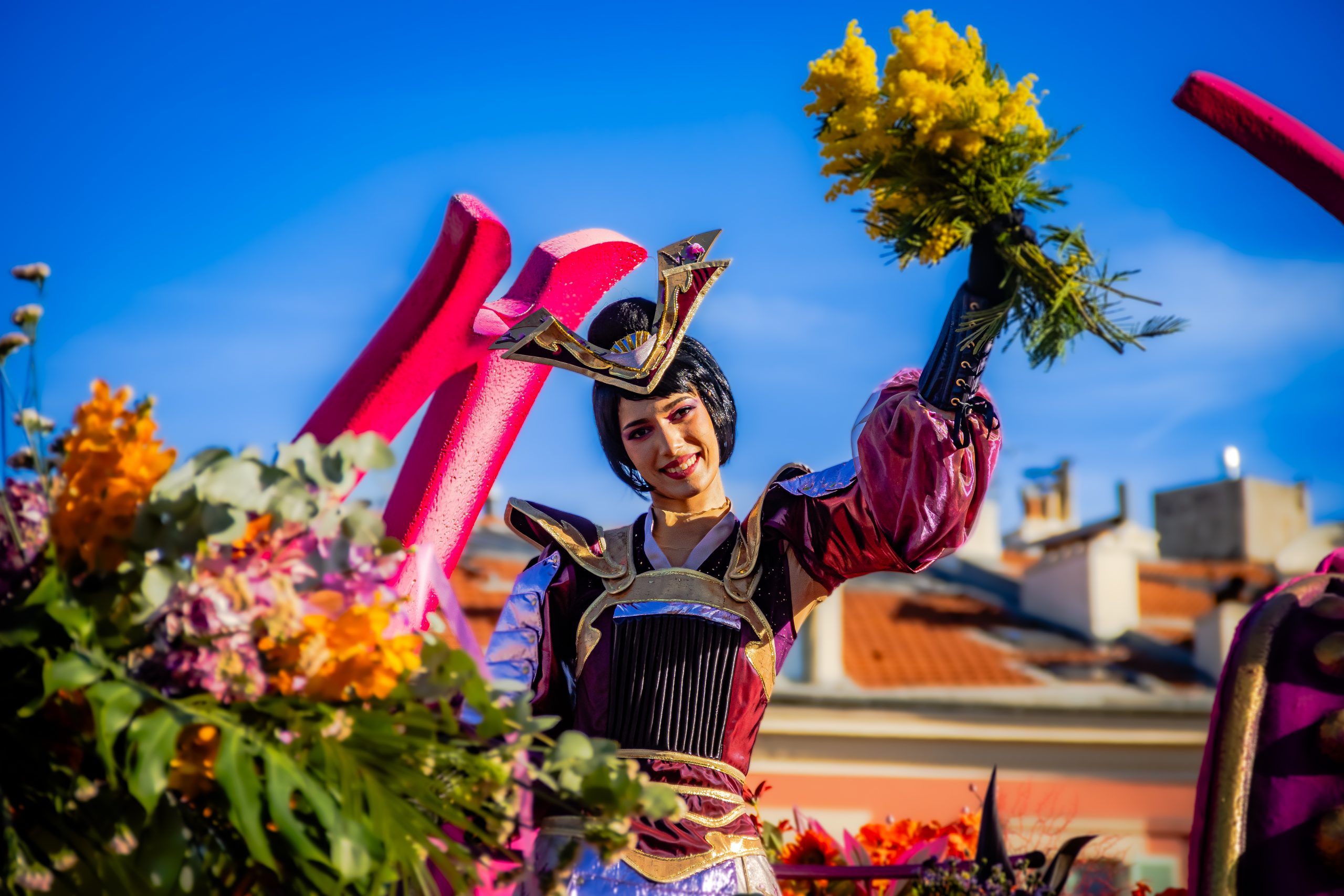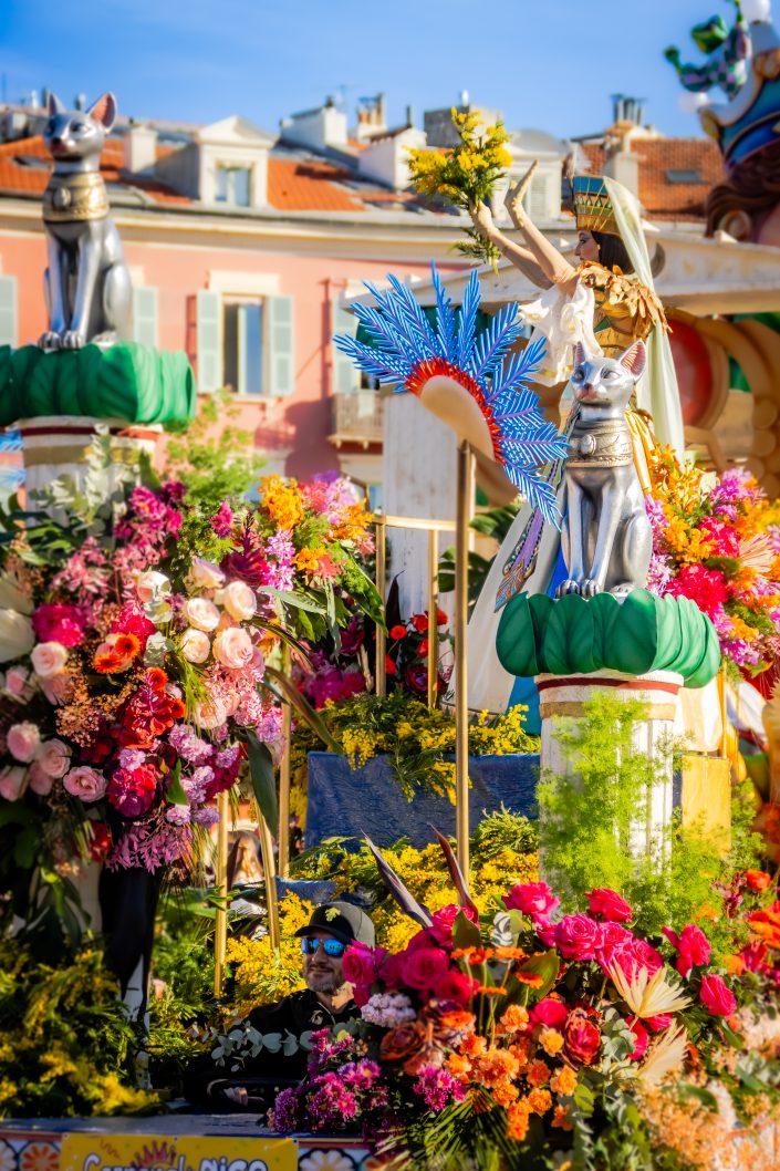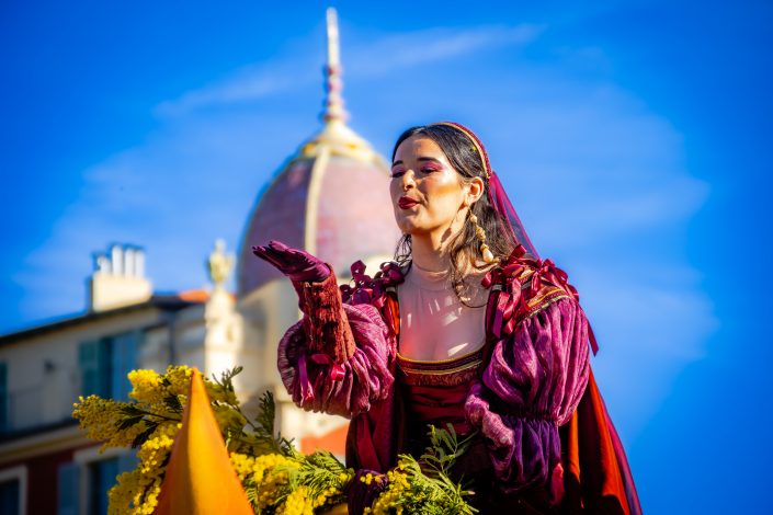 La Bataille des Fleurs, événement emblématique du Carnaval de Nice, offre un spectacle unique mêlant élégance, tradition et création artistique au cœur de Nice. Sur la célèbre Promenade des Anglais, des chars décorés de compositions florales spectaculaires défilent, portés par des égéries costumées qui lancent des milliers de fleurs au public dans une ambiance festive et colorée. Véritable vitrine du savoir-faire horticole azuréen, cette parade met à l’honneur la richesse florale locale — notamment mimosas, gerberas, lys et œillets — tout en célébrant l’art vivant et la poésie visuelle.