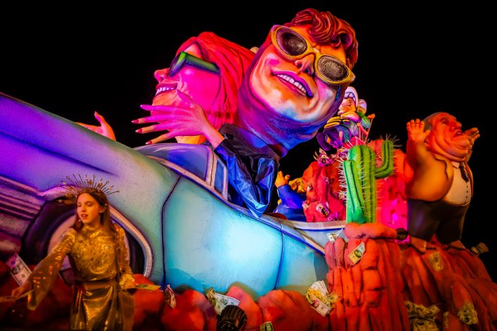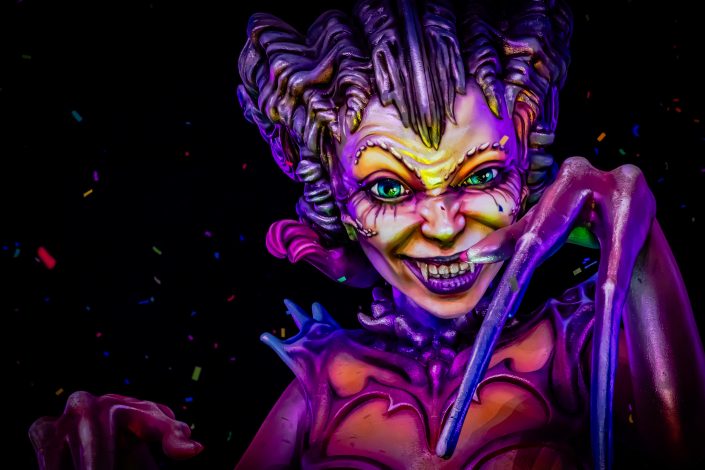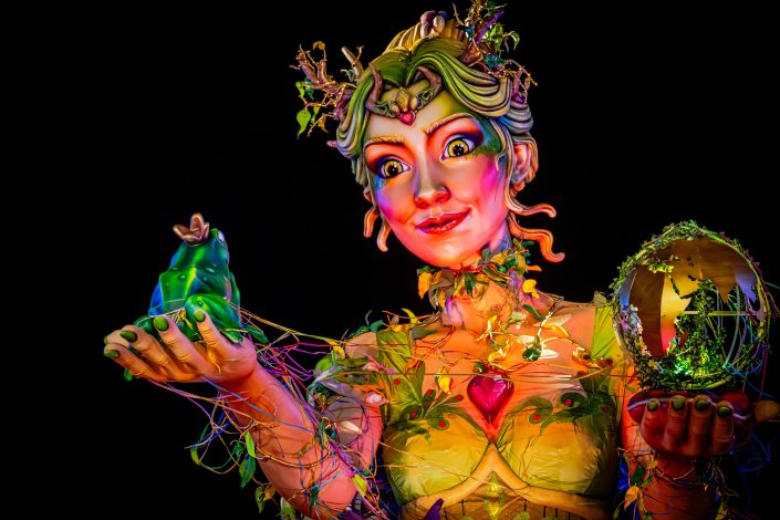 13 chars carnavalesques monumentaux imaginés par les ymagiers niçois et fabriqués par les carnavaliers pour défiler durant toute l’édition.